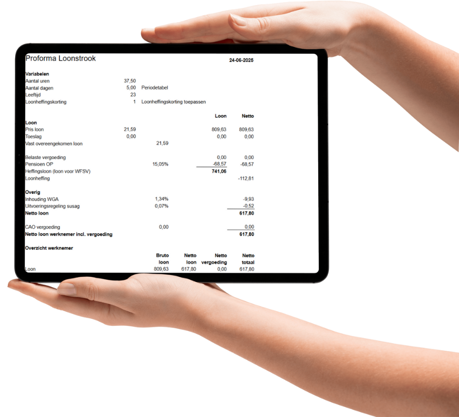 Maak onbeperkt proforma loon- berekeningen en loonkostenberekeningen.
